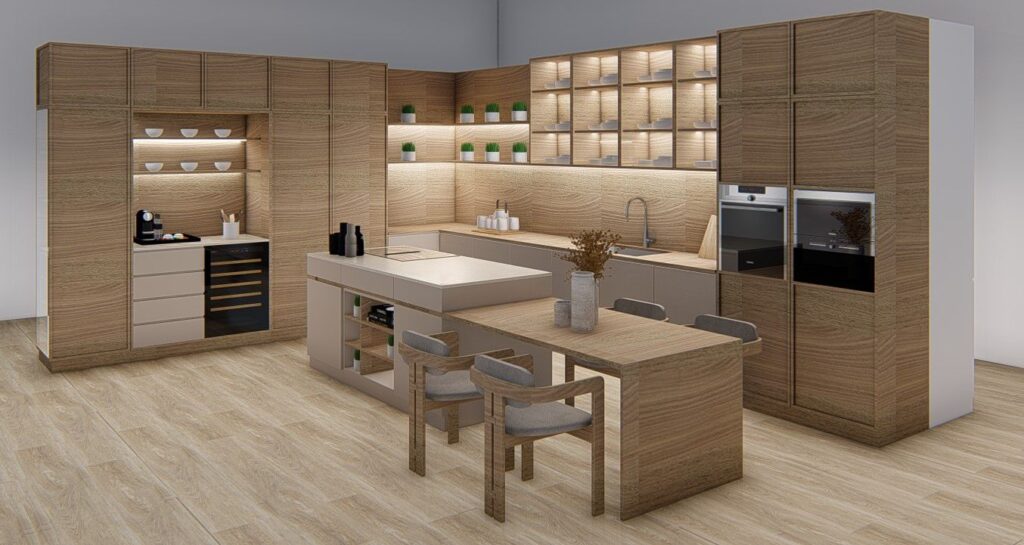 Creamos cocinas a medida adaptadas a tu espacio, estilo y necesidades. Diseños modernos, funcionales y personalizados para aprovechar cada rincón y convertir tu cocina en un espacio práctico y elegante.